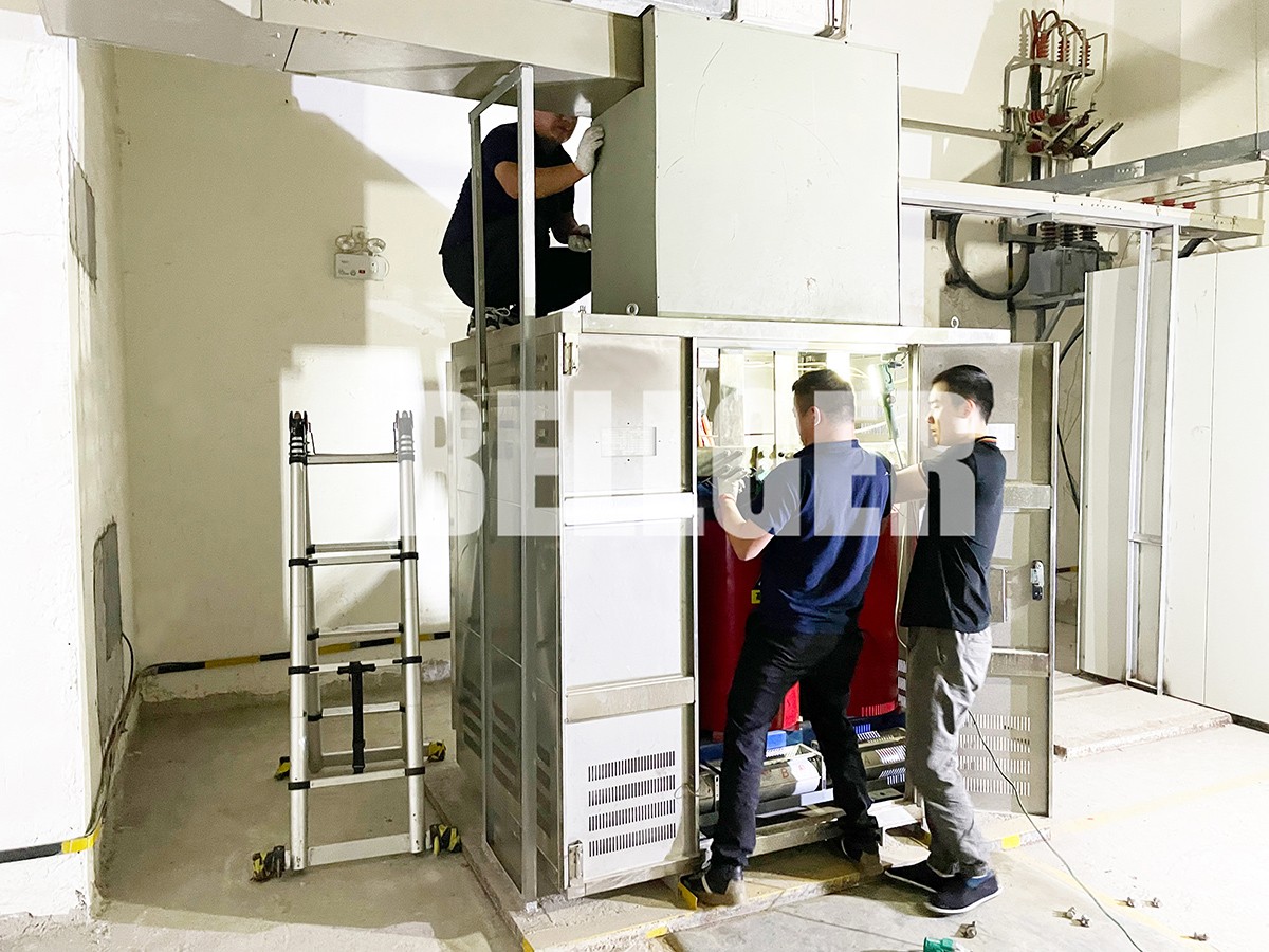居配干式变压器发出的噪声是让人心烦的低频噪音,比起一般的城市噪音,这种噪音对人体的损伤是更大的。一天24小时,一年365天,变压器常年运转,小区居民将被迫与这些噪音常年比邻而居,这对居民身心健康怎么会没影响! 即使是和变电站保持一定距离也无法幸免!今天贝歌尔减振安装小分队来到青岛荣星物业管理有限公司(帝邦 ··· 帝城)小区,为他们解决变压器噪音问题。在安装之前需要在无背景噪音的情况下测试噪音值,测试得出噪音值为 35.2dB(如下图6),未达到国家社会环境噪声排放标准 (GB22337-2008),我公司对该配电房设计制定了变压器减震器改造及高低压线槽悬挂减振方案,在为期48 小时停电时间内,交出完美作业。施工结束后,对所有上电设备进行两次细致的排查,以确保安全。变压器通电后,在物业公司、业主代表的参与下进行通电后的噪音测试,测量噪音值为21.9dB(如下图6 ),符合社会环境噪声排放标准,改造合格。